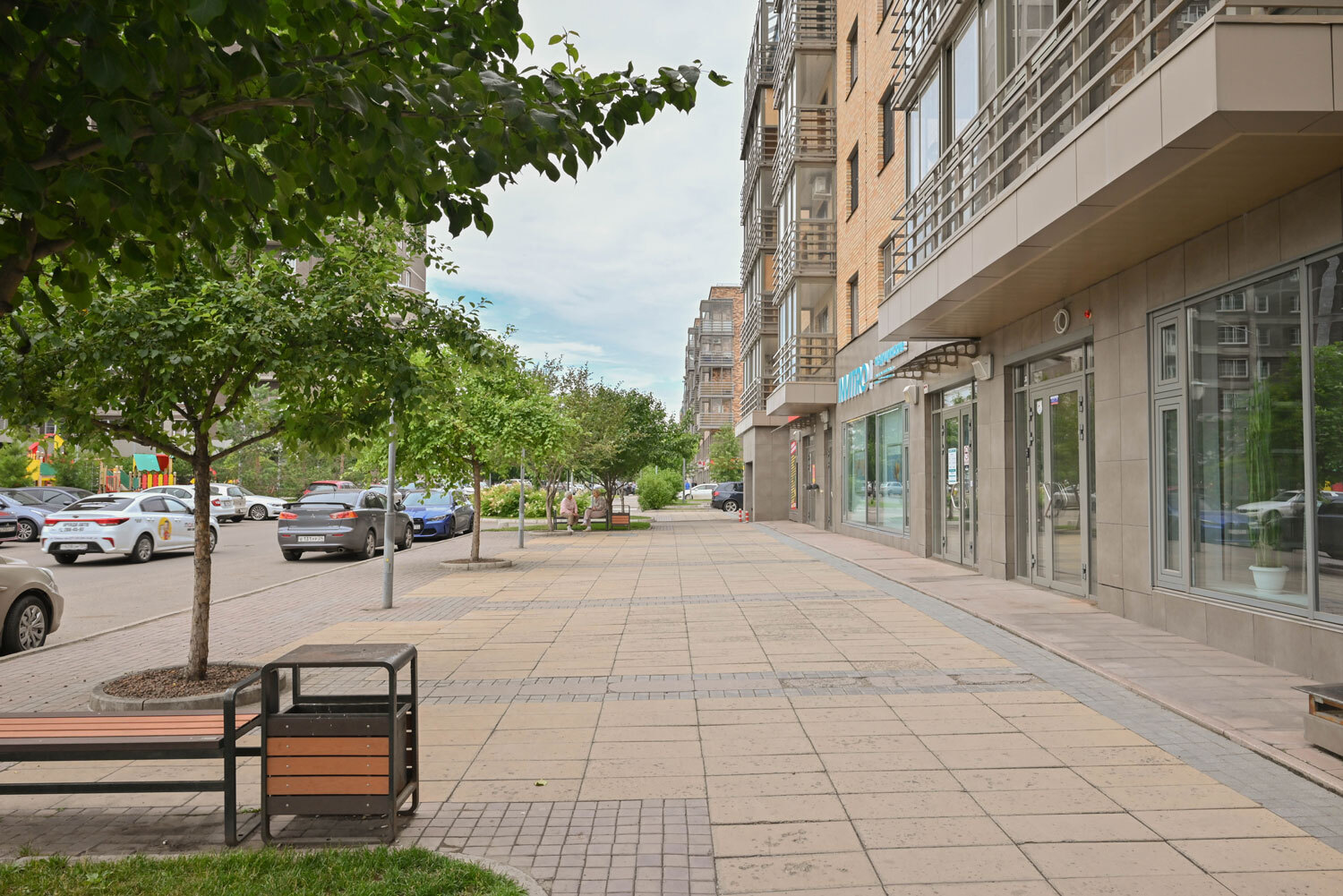 Пешеходный бульвар, зеленые зоны, праздничная иллюминация.